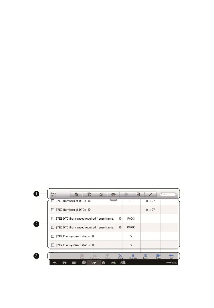 1. Diagnostics Toolbar Buttons – tap the drop-down button at the top center