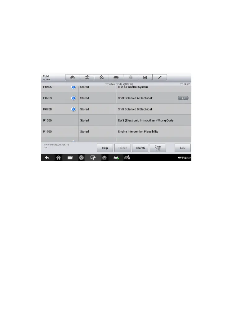 The erase codes function can be applied by tapping the Clear DTC button at