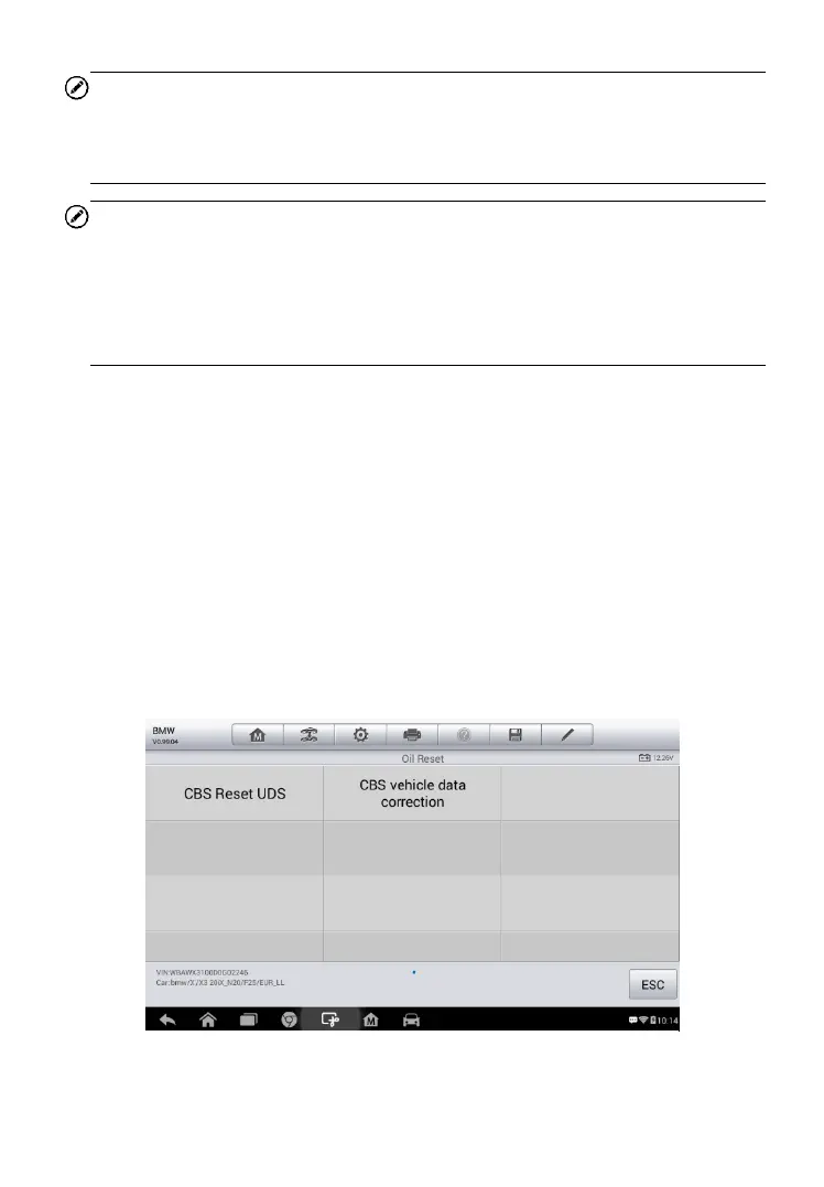 2. Tap Oil Reset button and wait for the vehicle manufacturer screen.