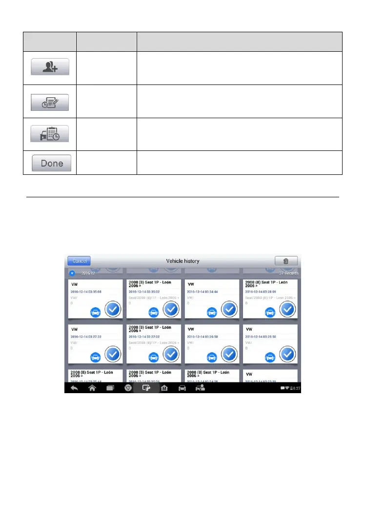 displayed in summarized details. Tap on a record to resume a diagnostic