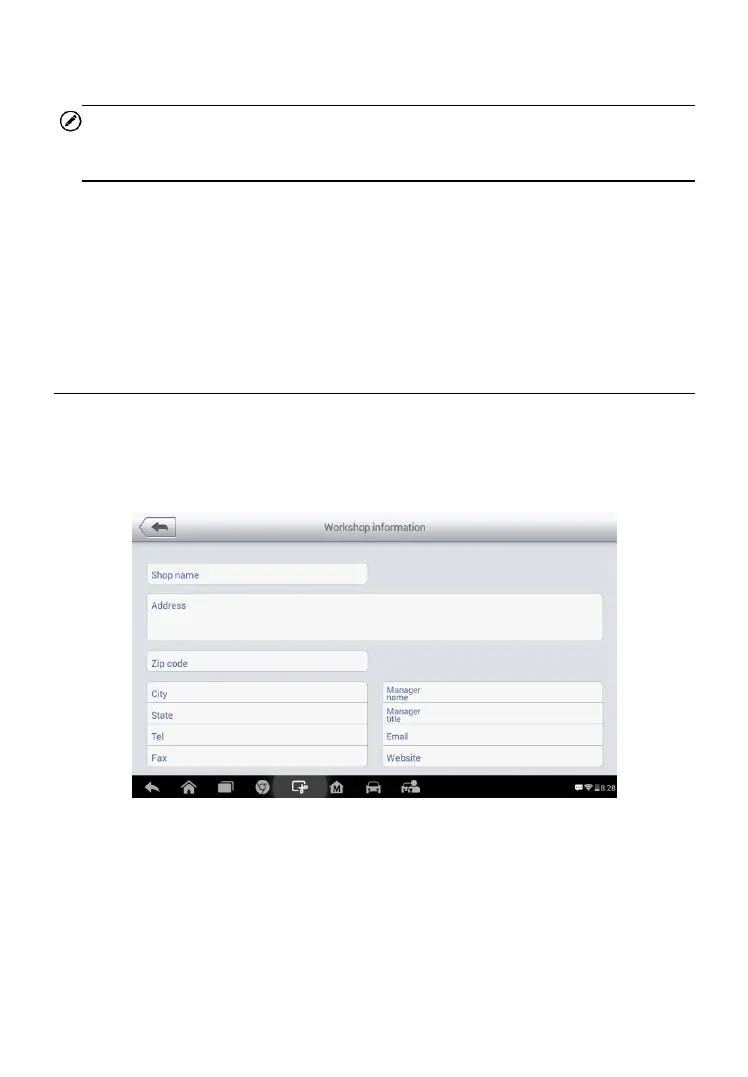 workshop information, such as shop name, address, phone number and other