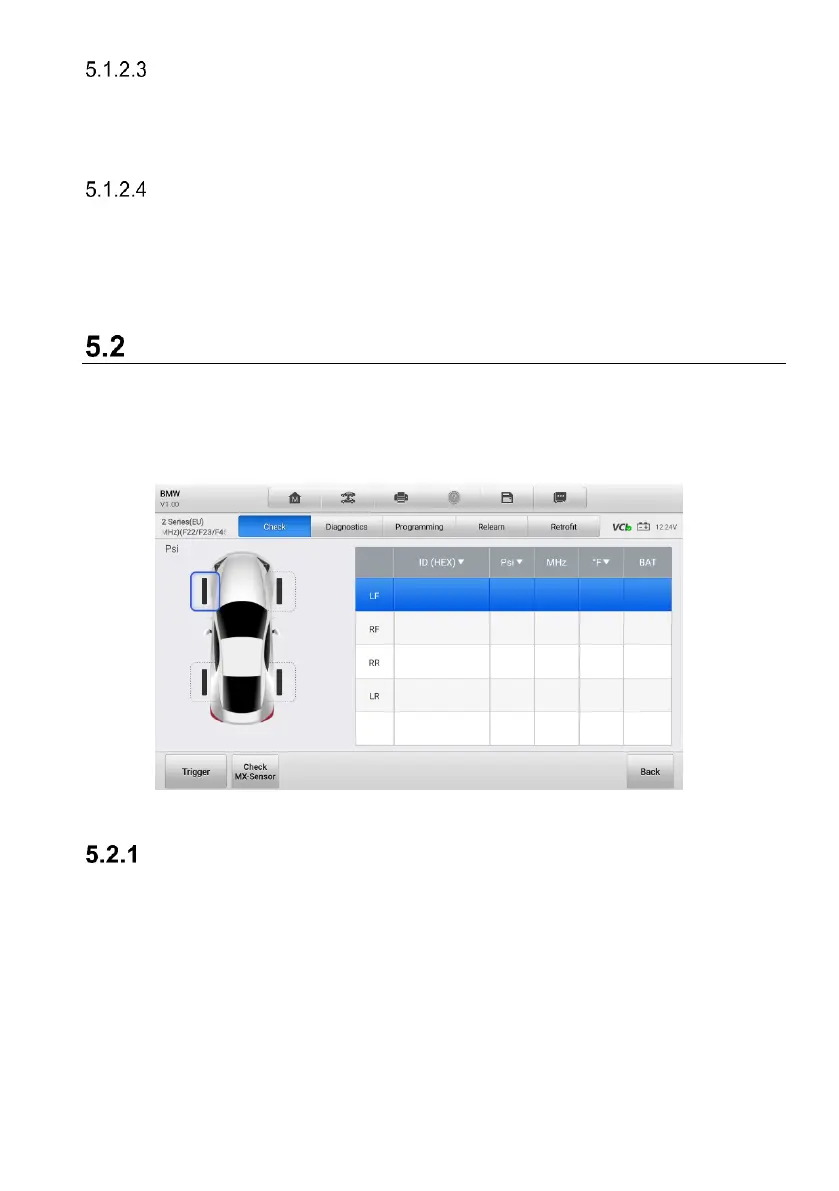The sensor check function allows activating of TPMS sensor to view sensor data such