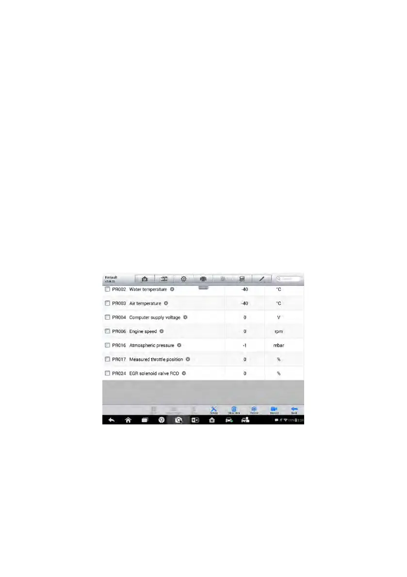 1. Diagnostics Toolbar Buttons – tap the drop-down button at the top