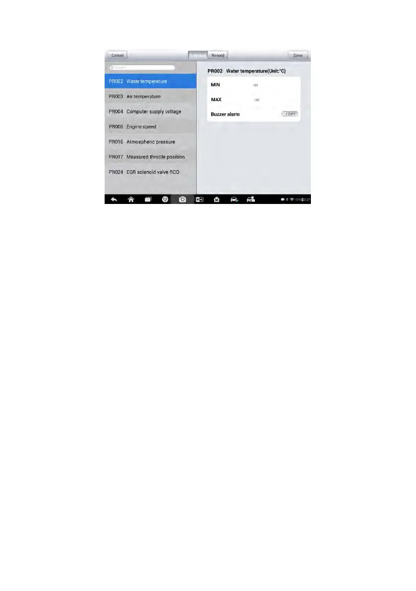 1. Tap the Setting functional button at the bottom of the Live Data