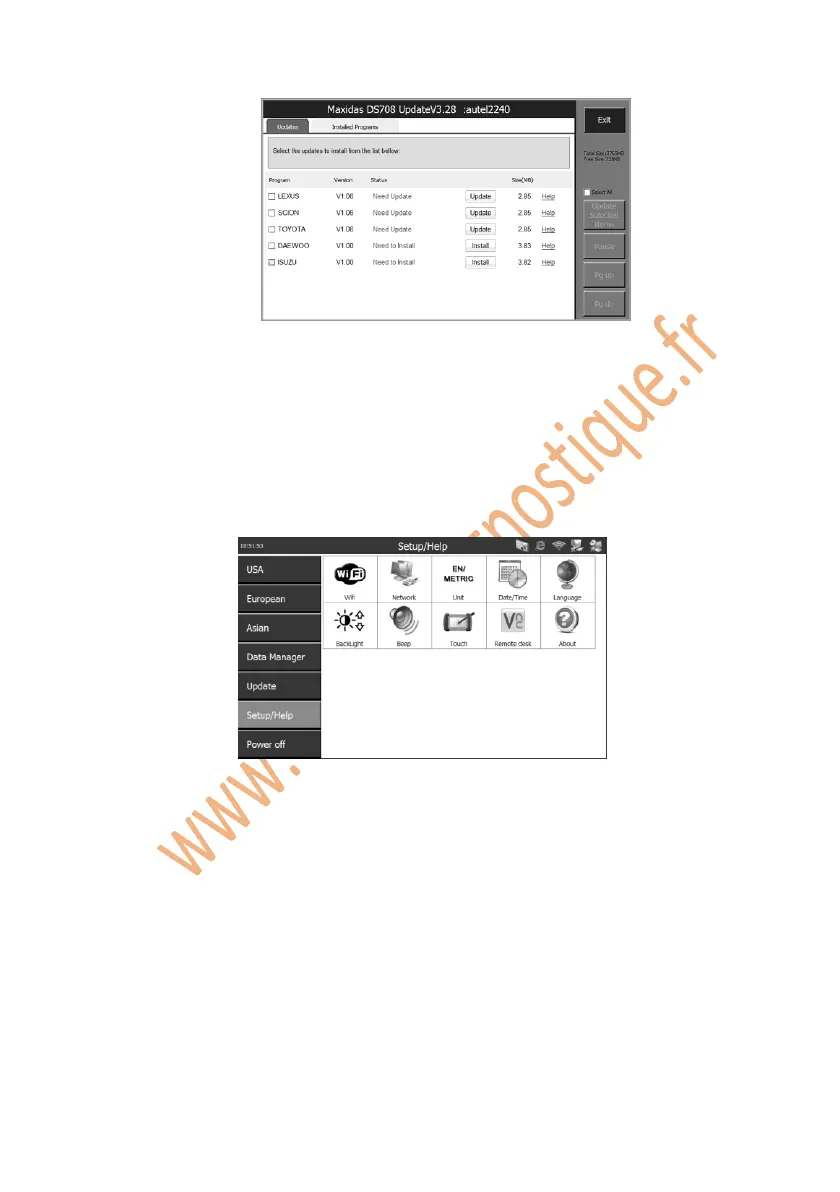 la fonction Setup / Aide s'affiche, comme illustré ci-dessous: