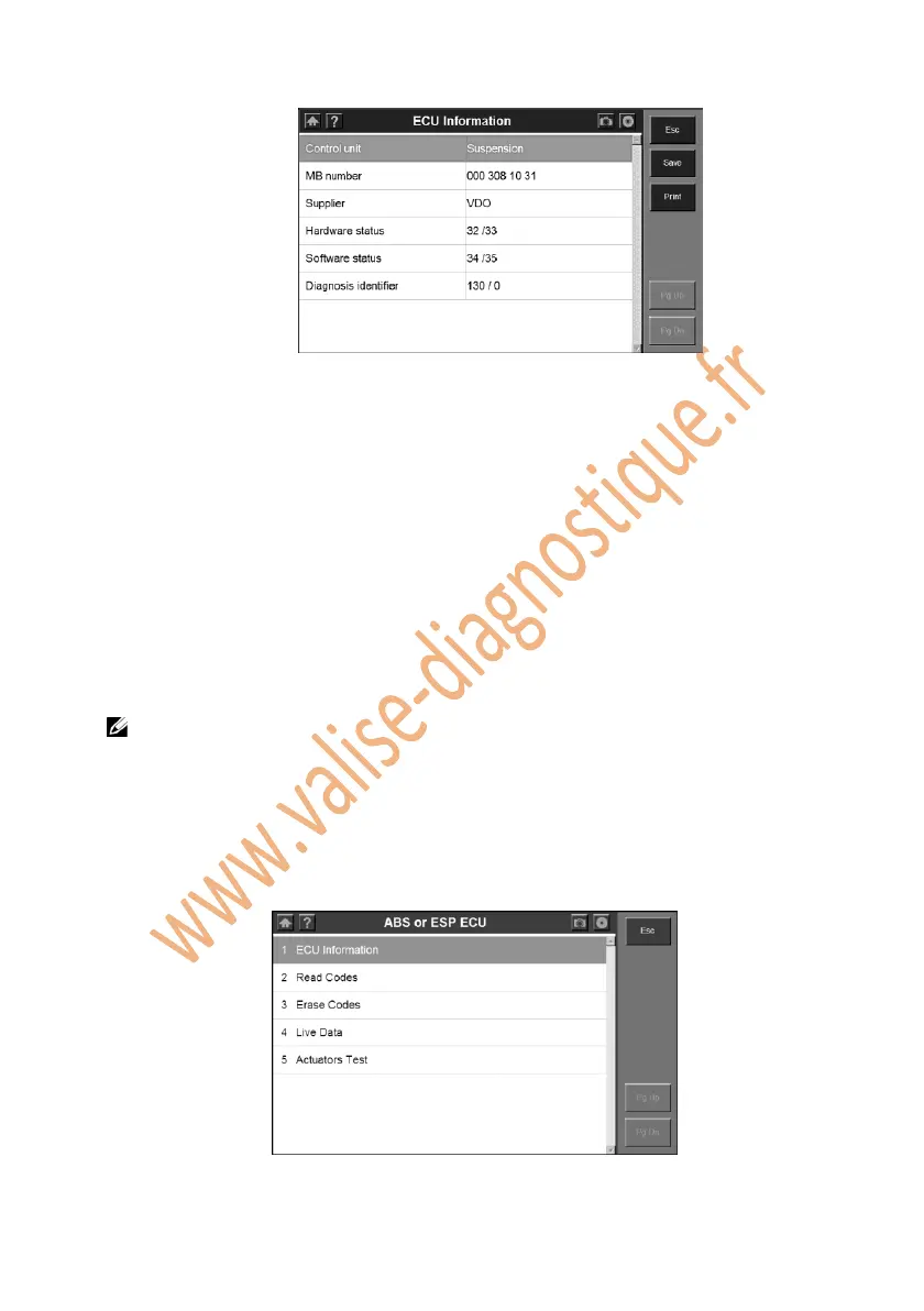 à l'ECU pour activer les actionneurs. Ce test permet de déterminer l'intégrité du