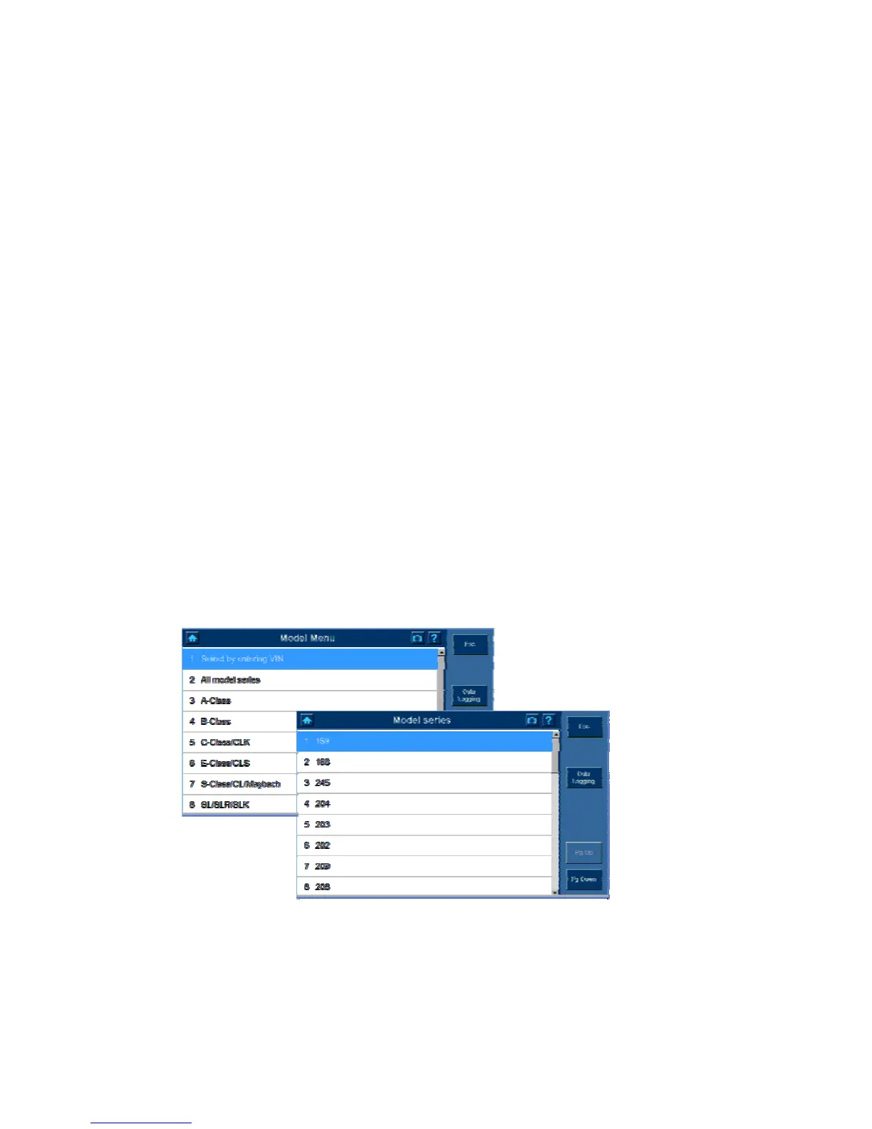options available for the vehicle and ECU being tested will appear on the screen. Select