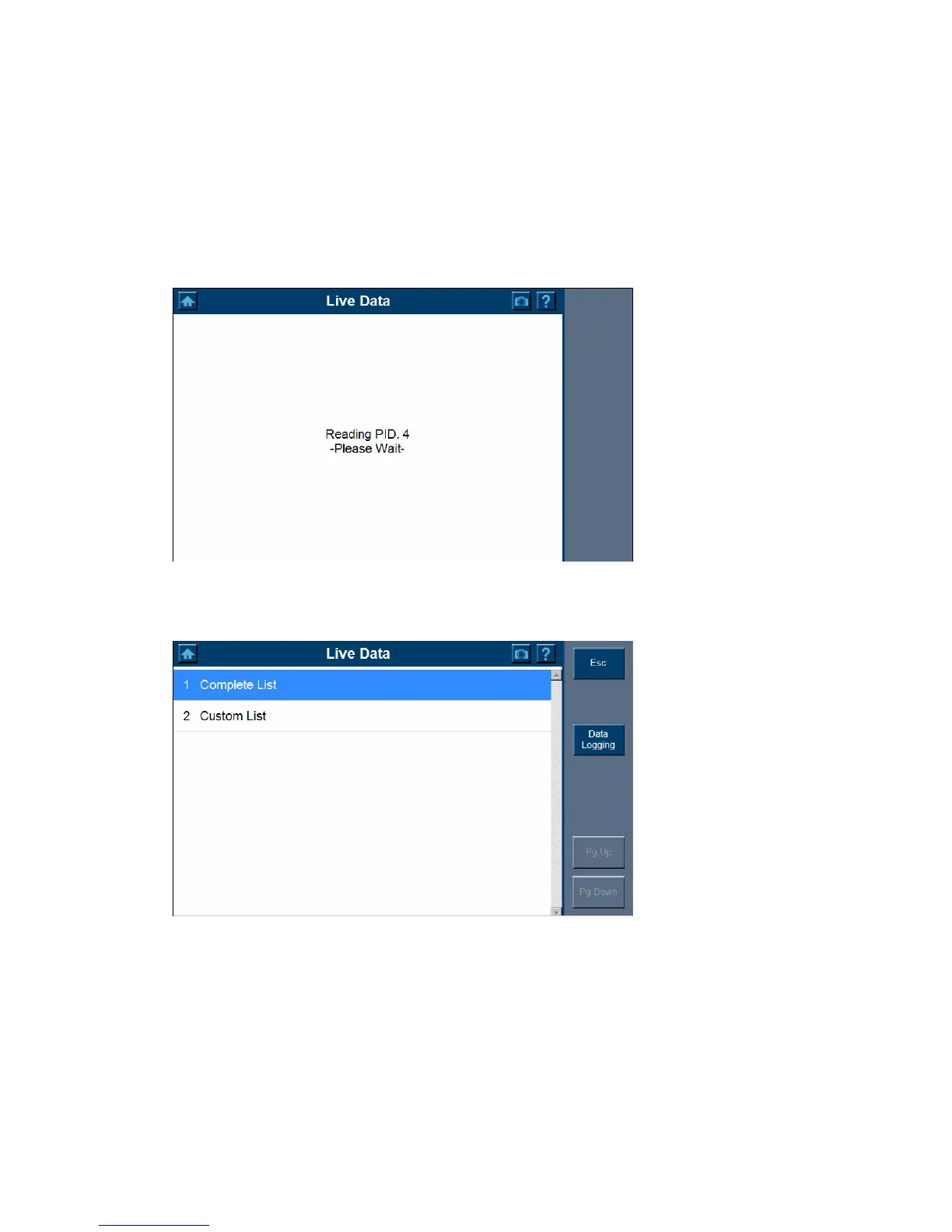 The Live Data function allows you to view the live (real time) PID data from the vehicle’s