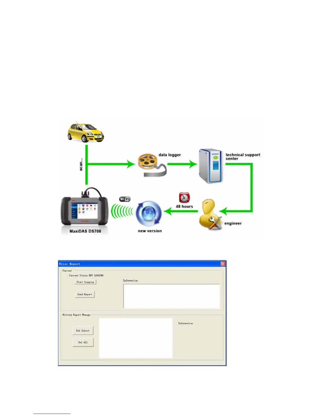 data logging while the vehicle is being scan. The error report will be sent to the technical