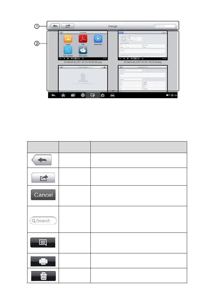 1. Toolbar Buttons – used to edit, print and delete the image files. See the