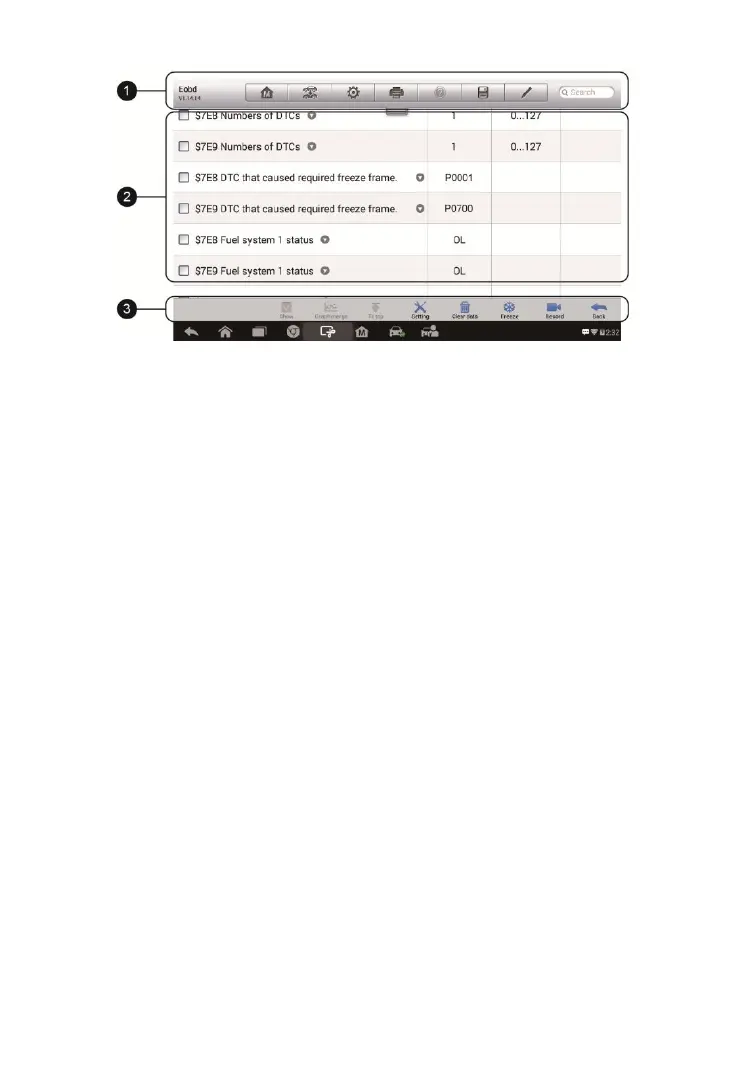 1. Diagnostics Toolbar Buttons – tap the drop-down button at the top center