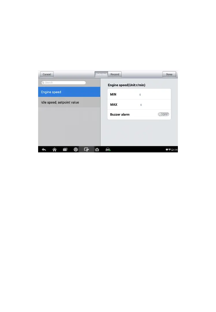 1. Tap the Setting functional button at the bottom of the Live Data