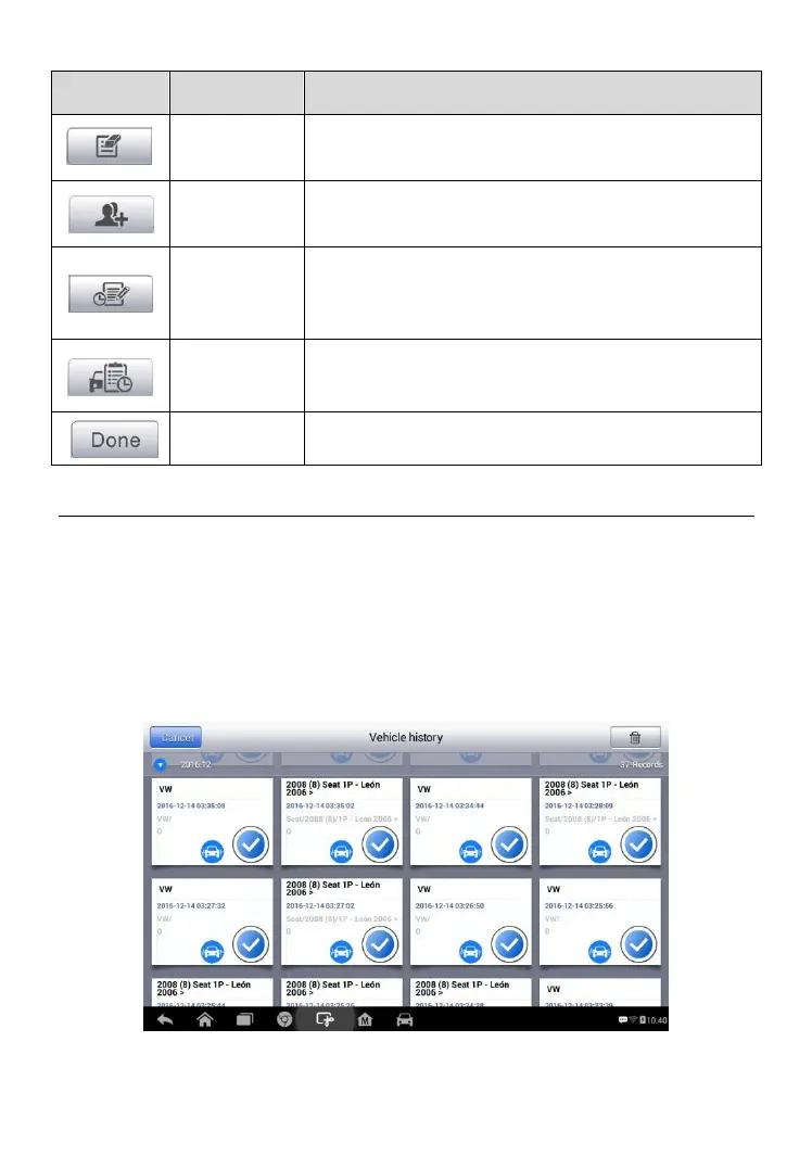 Opens the Vehicle History screen which displays
