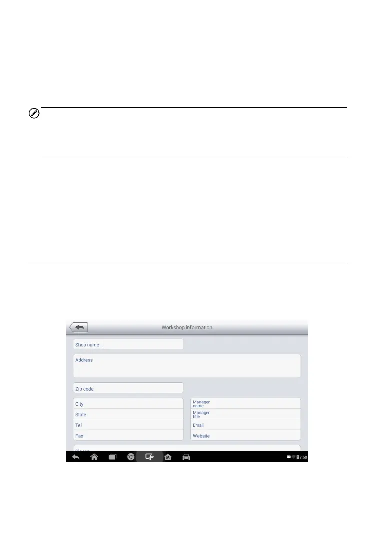 detailed workshop information, such as shop name, address, phone number