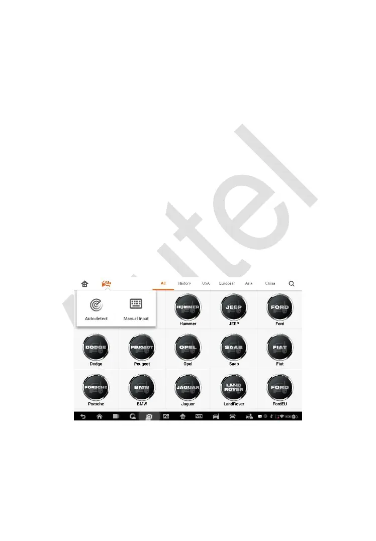 manually select vehicle manufacturer, instrument information step by step to