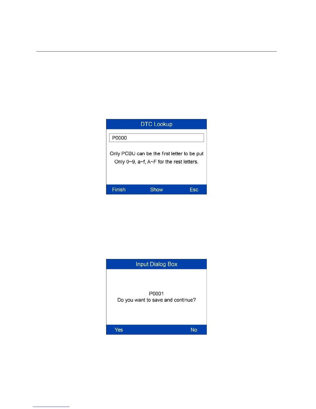 2) Wait for the scan tool to display the DTC Lookup screen.