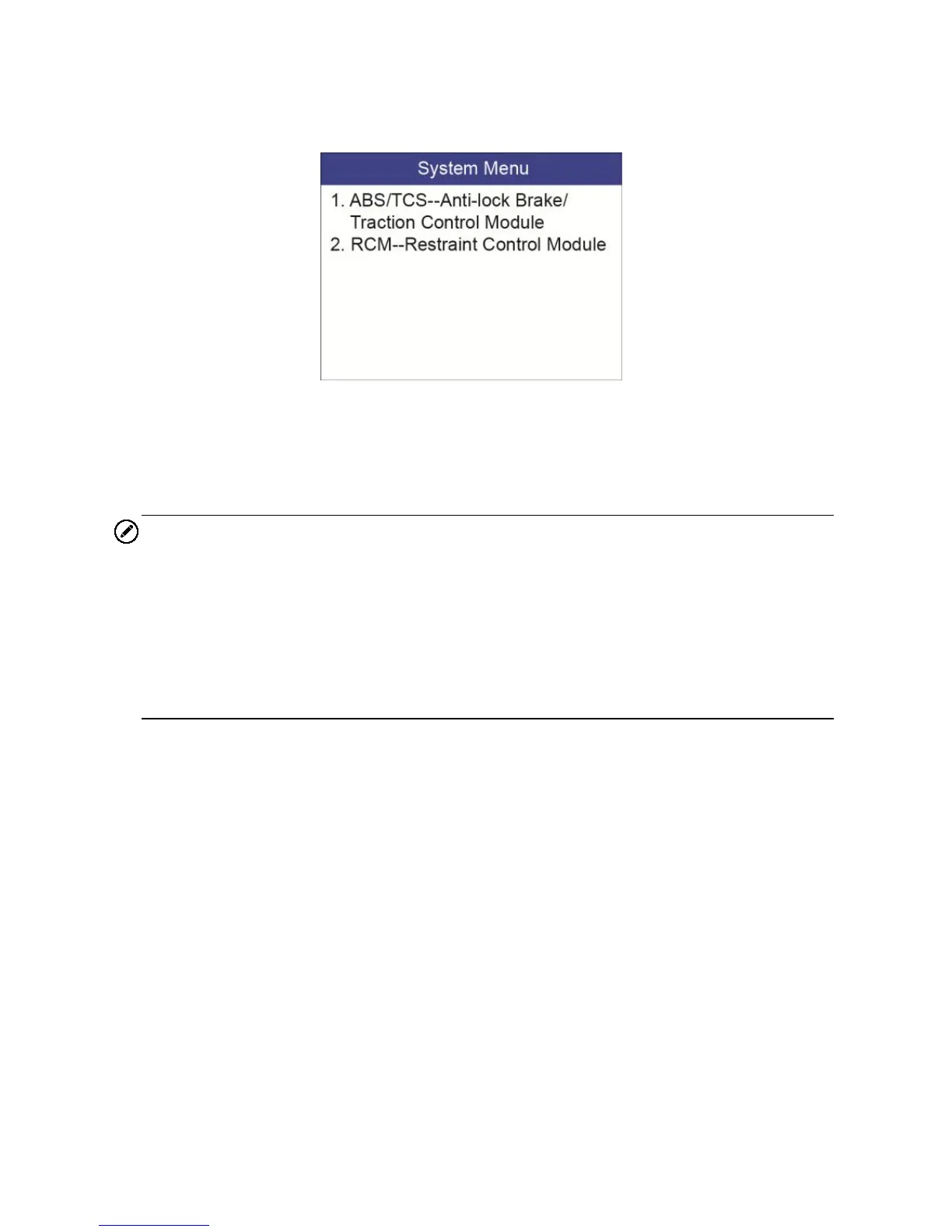 2. If the vehicle does not support ABS/SRS communication, an advisory