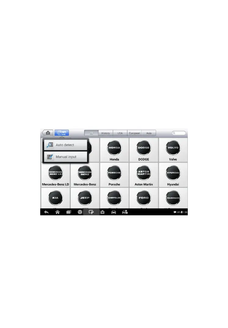 2. Tap the VIN Scan button on the top toolbar to open the dropdown