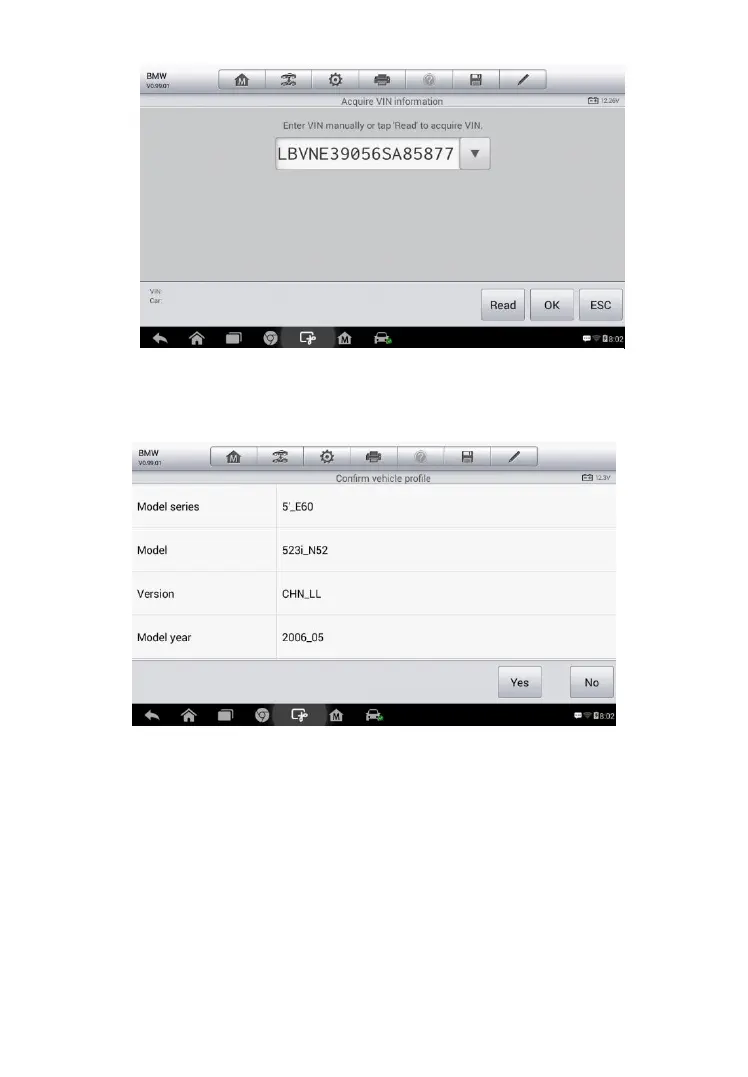 4. Tap OK to confirm the vehicle profile or NO if the information is not