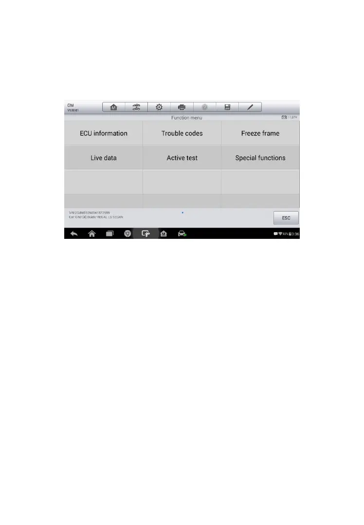 the application guides the user to the proper diagnostic function menu