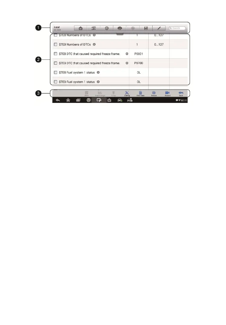 1. Diagnostics Toolbar Buttons – tap the drop-down button at the top