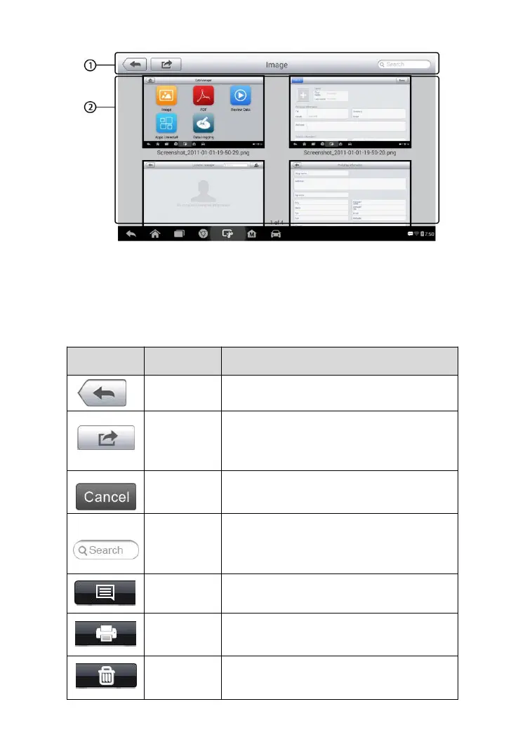 1. Toolbar Buttons – used to edit, print and delete the image files. See the