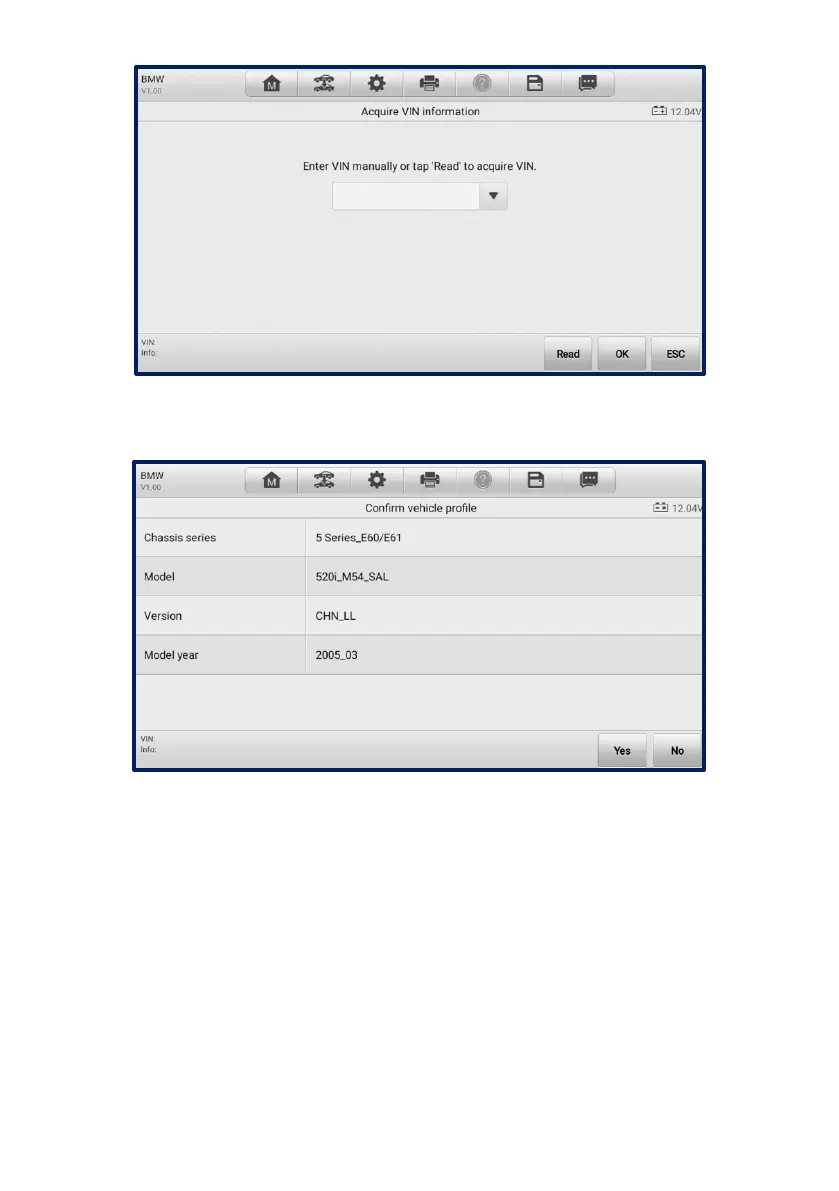 4. Tap Yes to confirm the vehicle profile or No if the information is not correct.