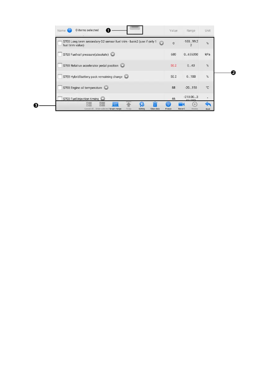 1. Diagnostics Toolbar Buttons — tap the drop-down button at the top center of the