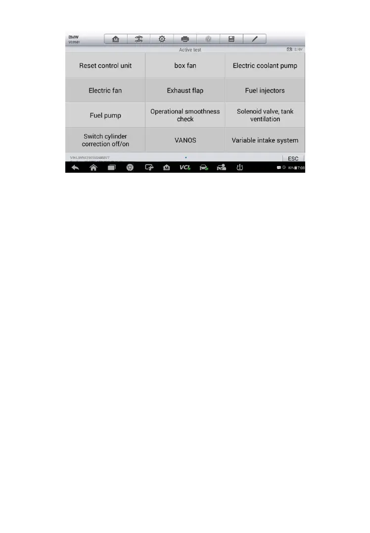 The functional buttons at the lower right corner of the Active Test screen