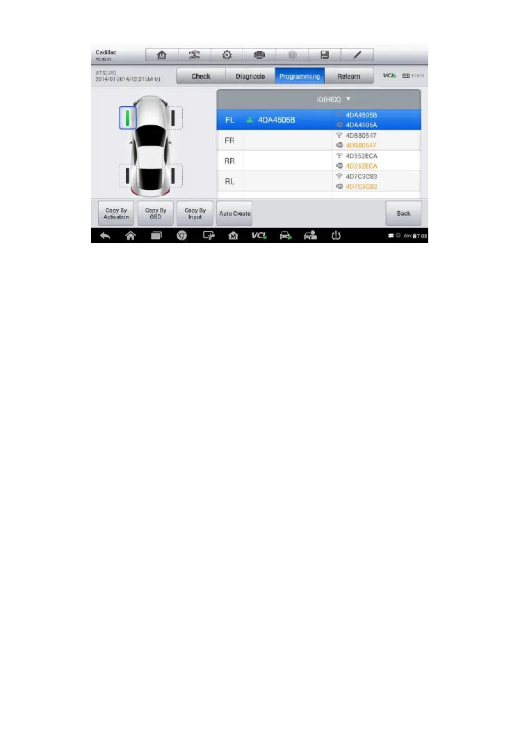 right corner of the tablet. Tap Copy by OBD to program the new MX-Sensor.