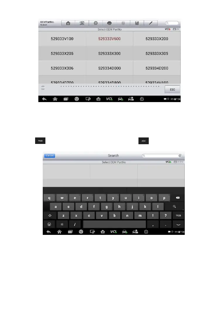 number. A soft keyboard will display as below. Enter the OEM Part No.