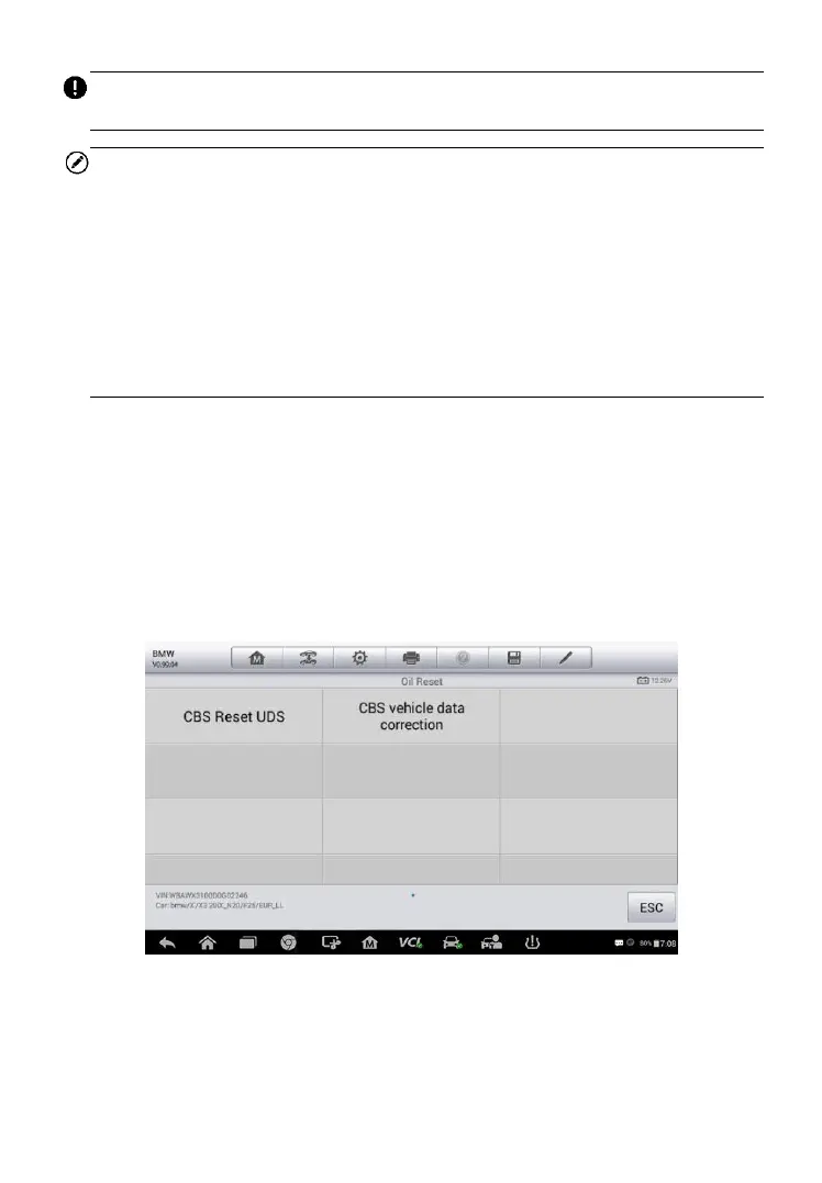2. Tap Oil Reset button. The vehicle manufacturer screen displays.