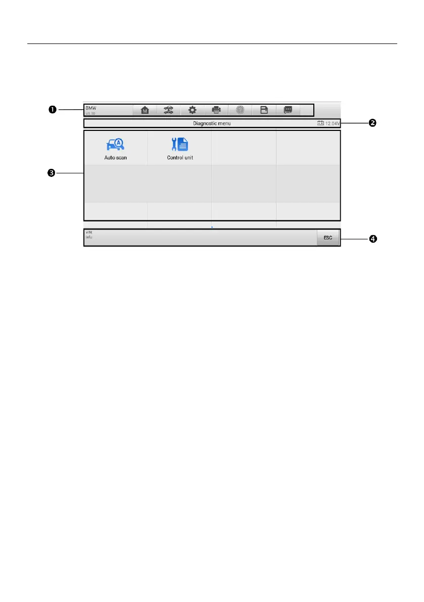 After the test vehicle is identified, the diagnostic menu will appear. This section consists