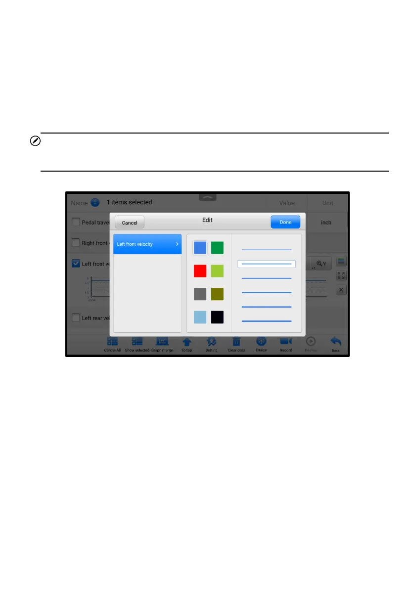 ➢ To edit the waveform color and line thickness in a data graph