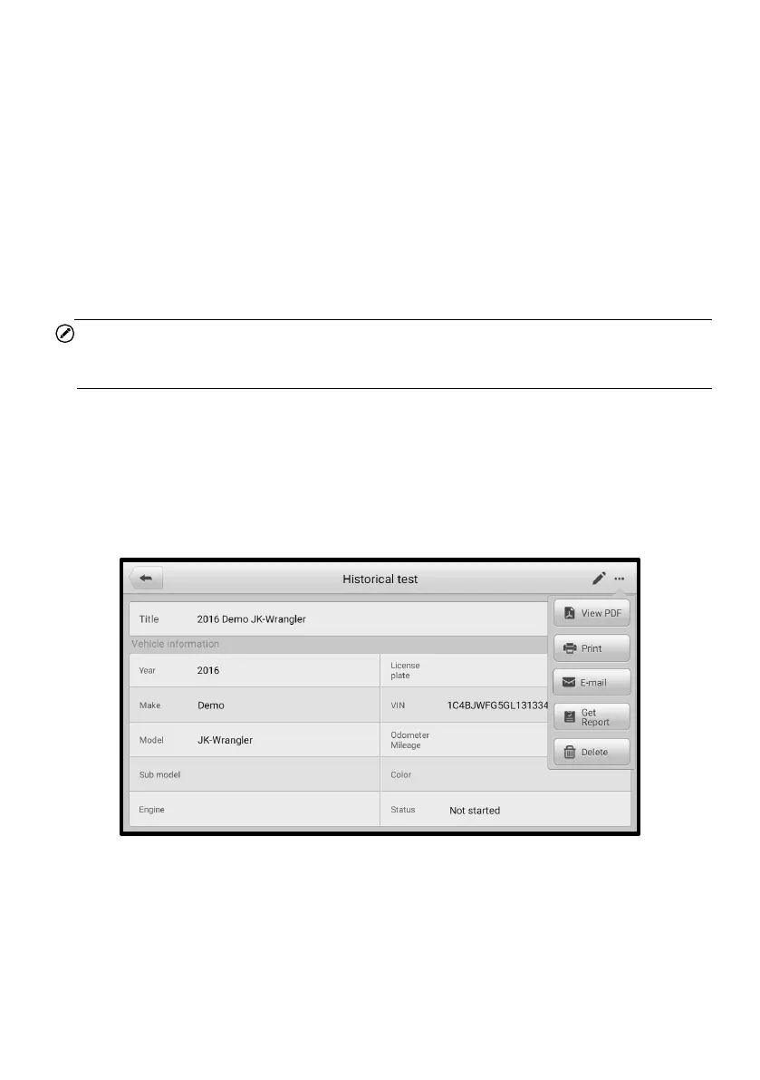 4. Select a vehicle thumbnail and choose a record. A Test History record sheet will