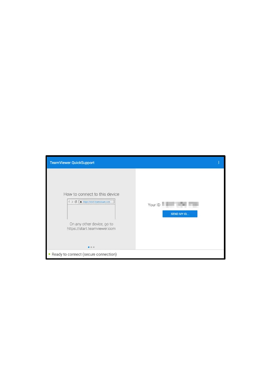 TeamViewer QuickSupport screen appears and the device ID is generated and