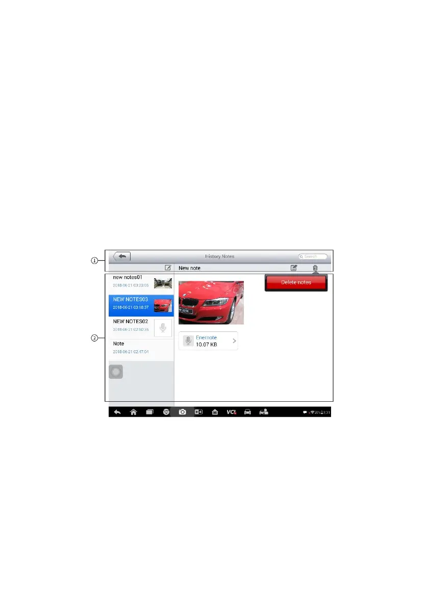 4. Tap the History Notes button on the top bar. The History Notes screen