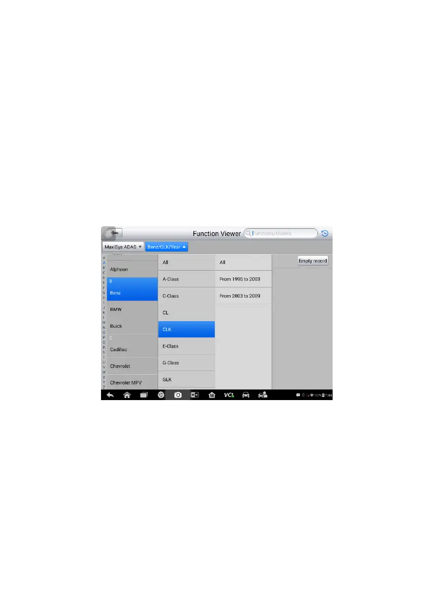 1. Tap the Function Viewer application on the MaxiSys Job Menu. The