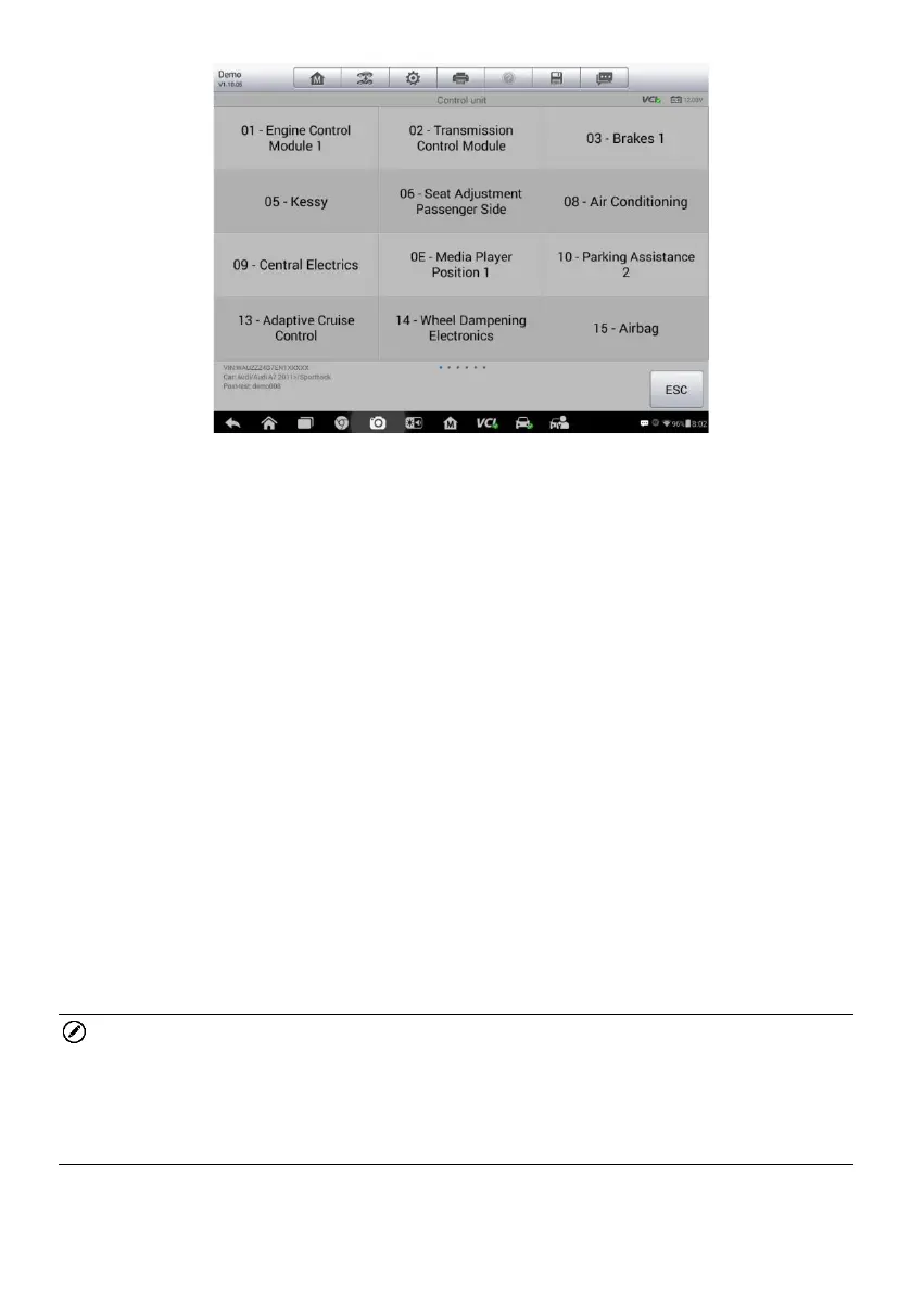on the test vehicle, this selection may sometimes appear as Control Unit