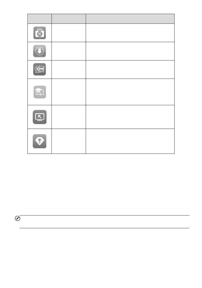 features. The table below shows each icon and its corresponding feature.