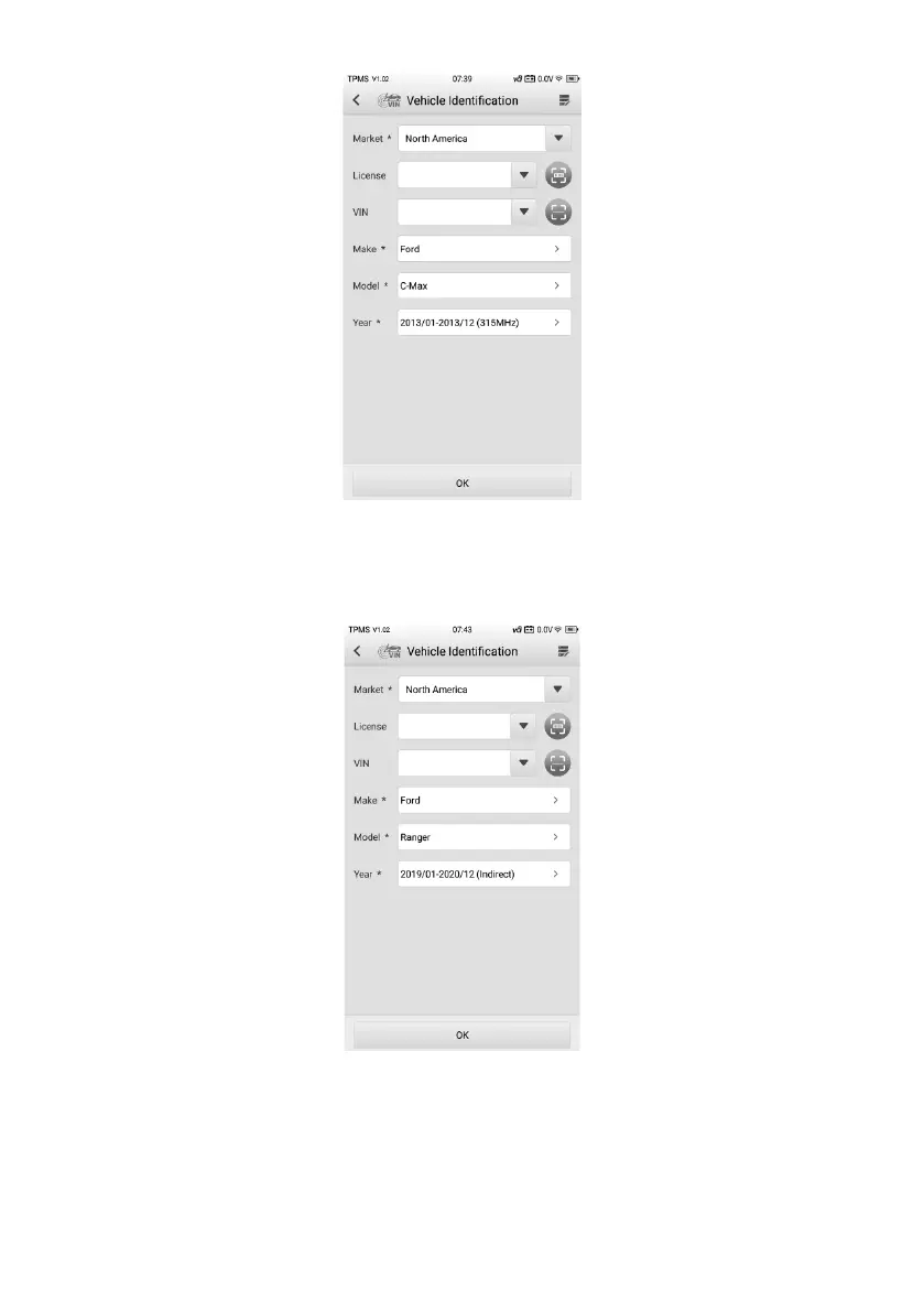 provide Indirect TPMS mode. Tap the Year option bar to open a dropdown list of