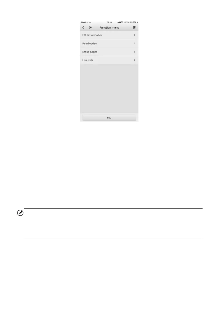 The Function Menu options vary slightly for different vehicles. The function