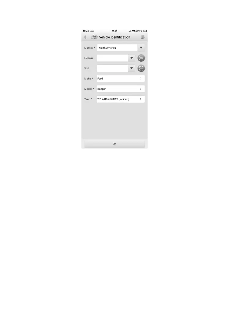 vehicle lines provide Indirect TPMS mode. Tap the Year option bar to open a