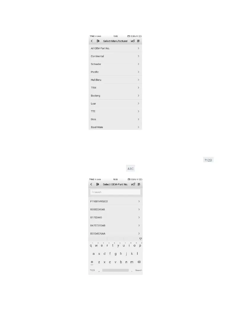 enter the OEM part No. A soft keyboard will display as below. Enter the
