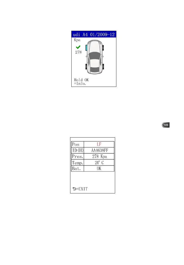 Use the UP or DOWN Arrow button to select the tested wheel after the sensor