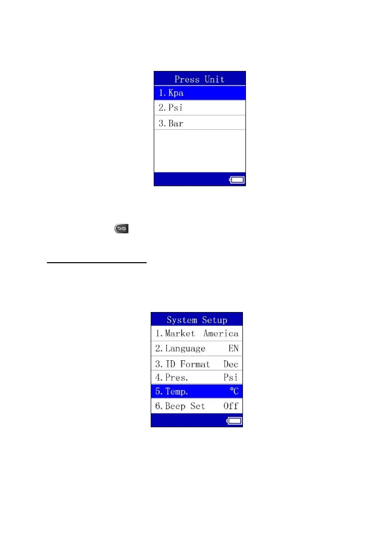 2) From Pressure Unit screen, use the UP or DOWN Arrow button to select