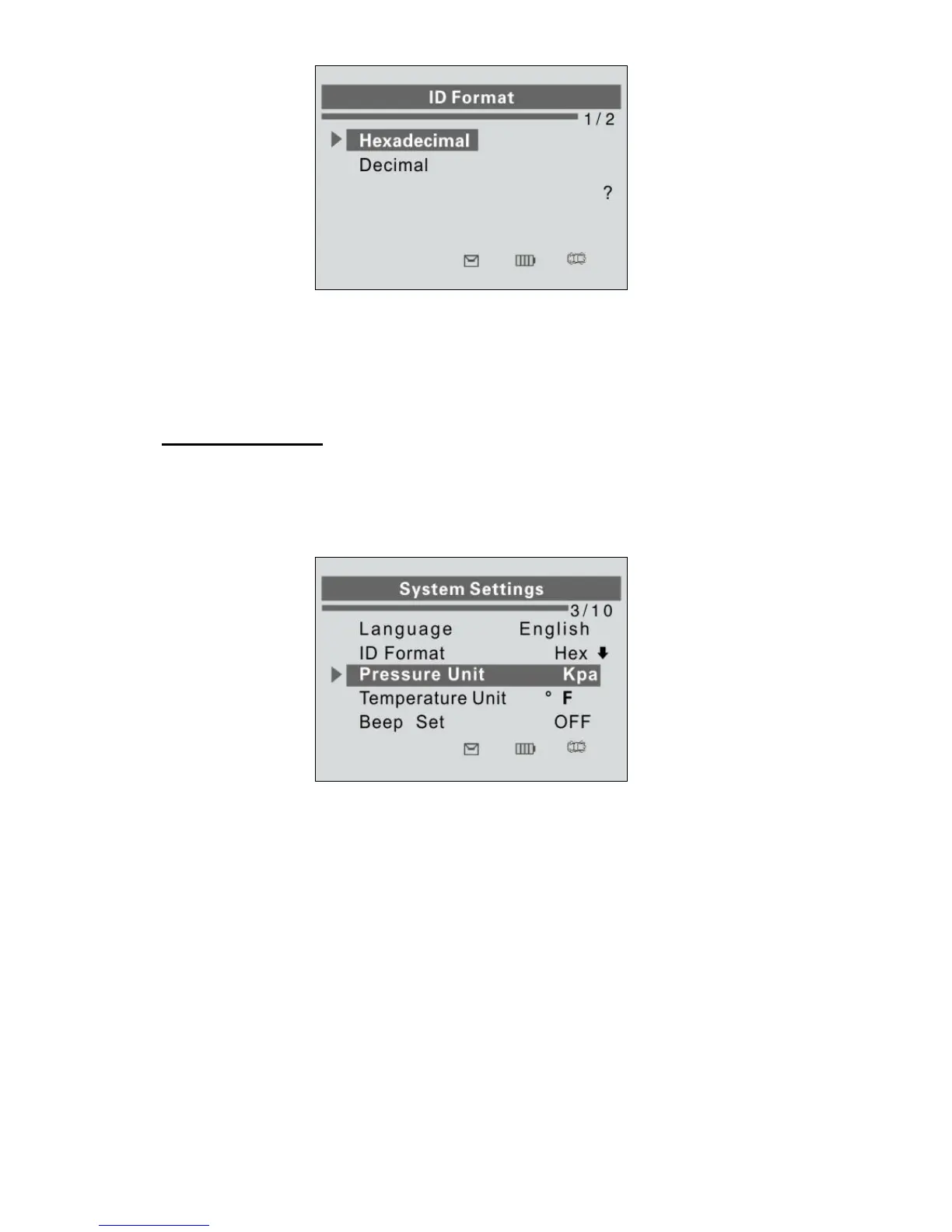 1) From System Settings screen, use the UP/DOWN SCROLL