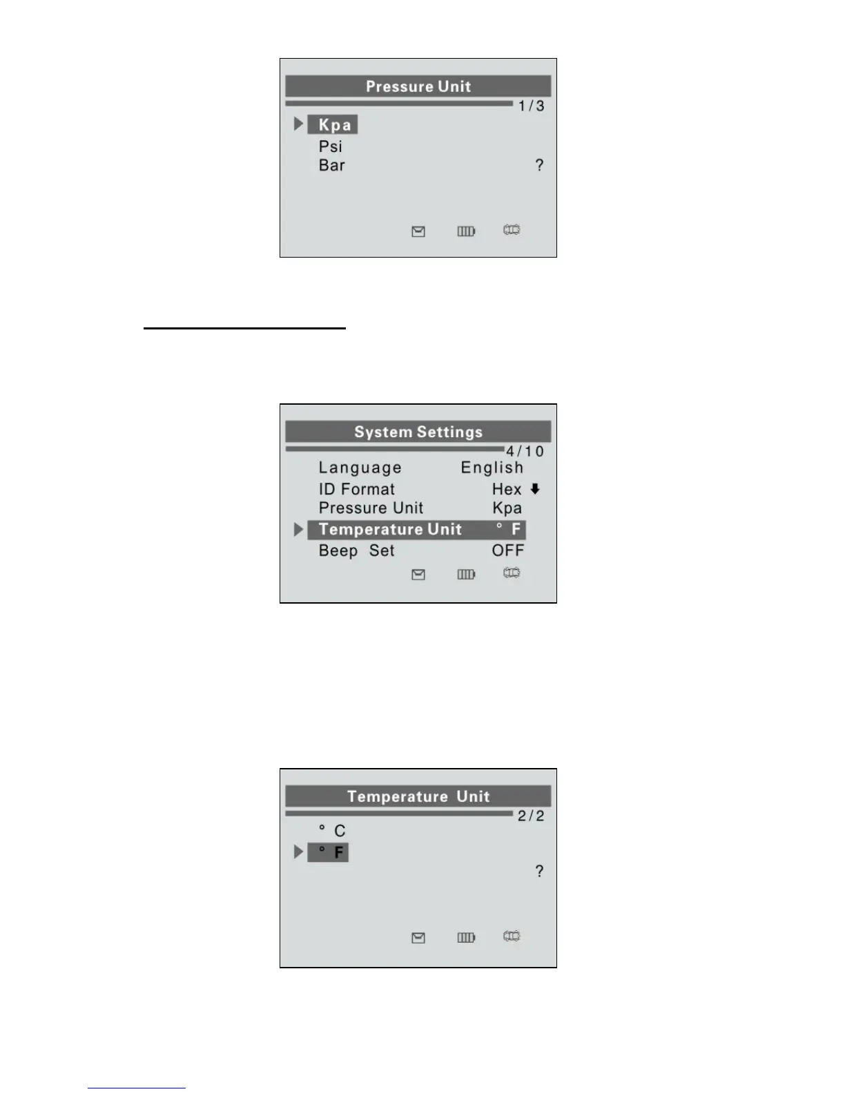 2) From Temperature Unit screen, use the UP/DOWN SCROLL