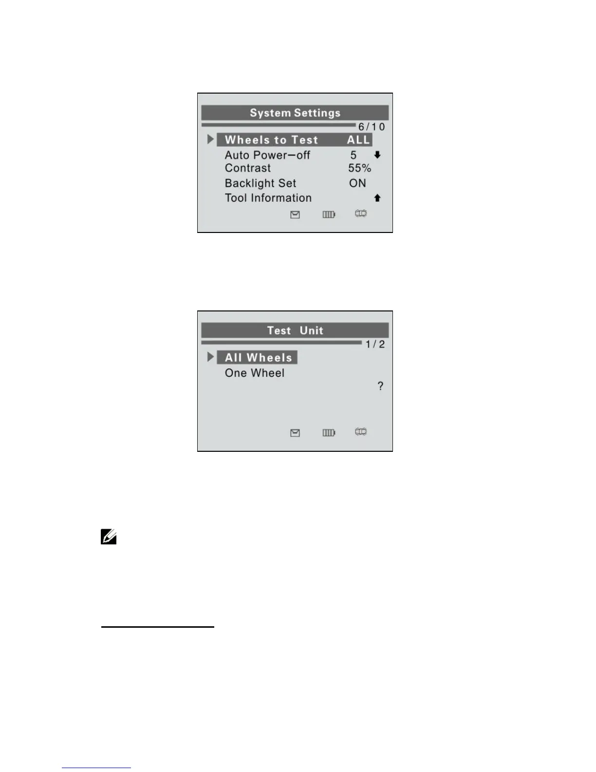 button to select Wheels to Test, and press the Y button.