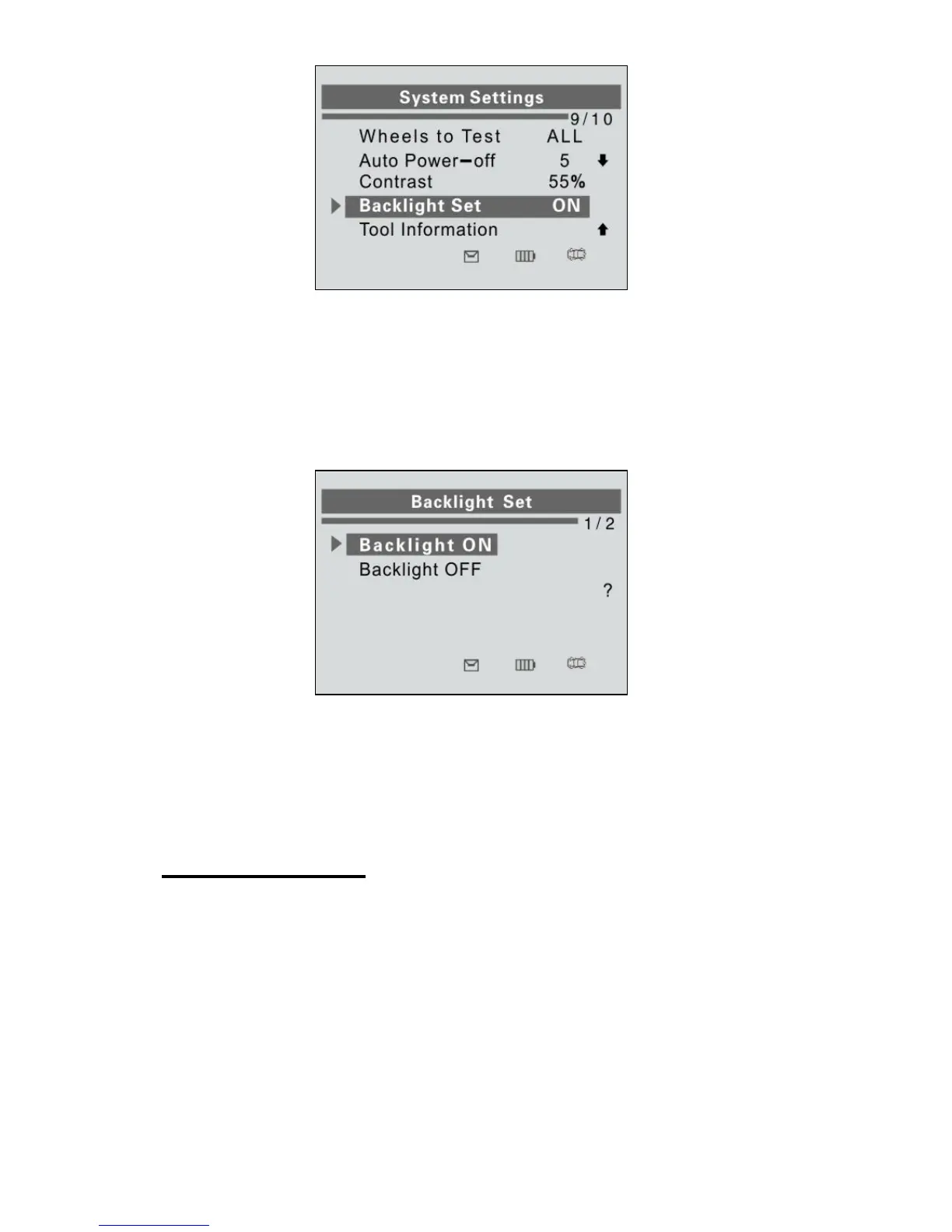 2) From Backlight Set menu, use the UP/DOWN SCROLL button